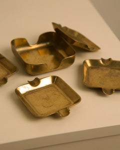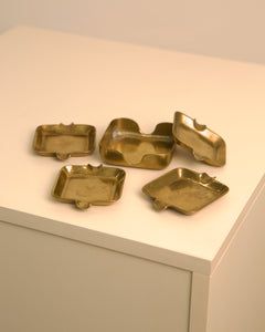Réalisés en laiton massif, ils présentent une très belle patine du temps, témoin de leur histoire et de leur authenticité. Leur design sobre et géométrique, associé à la chaleur du laiton vieilli, en fait des objets décoratifs uniques autant que fonctionnels.
